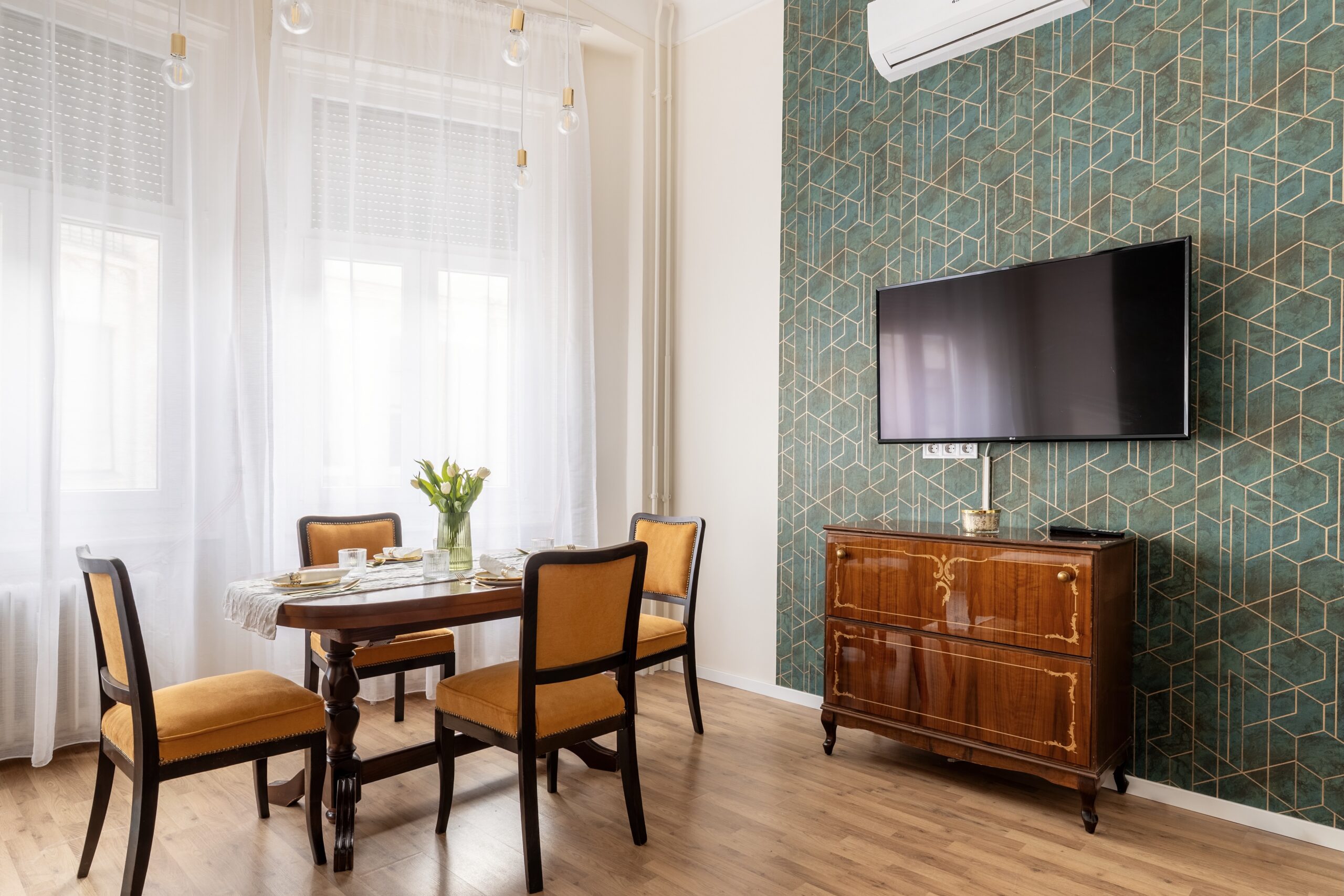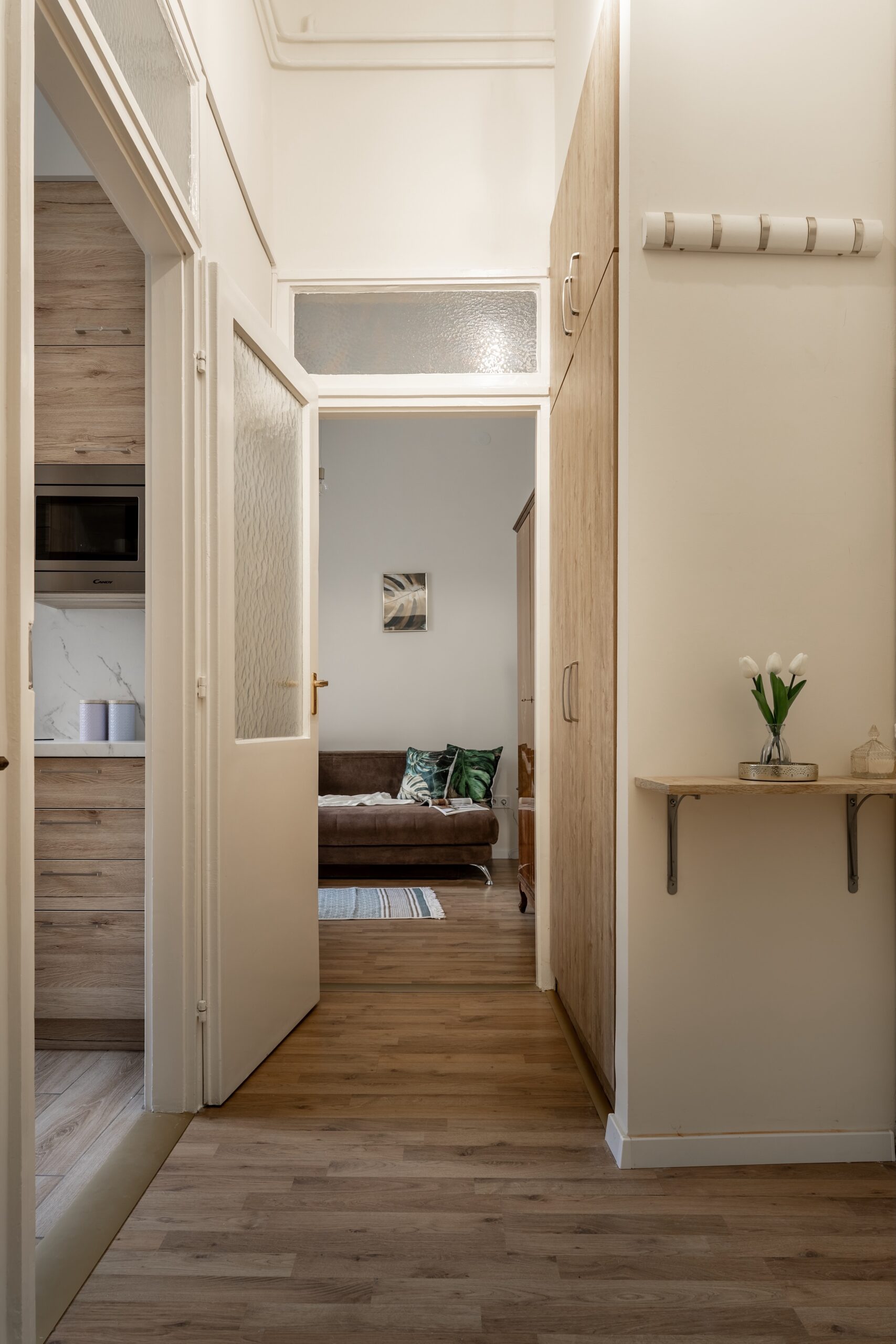 A lakás belső tereit a tágasság és a fény jellemzi, a felújítás során pedig teljes műszaki és esztétikai korszerűsítés történt. A konyha vadonatúj, prémium gépekkel (mosogatógép, légkeveréses sütő, kávéfőző) felszerelt, a szobák hűtését és fűtését pedig modern klímarendszer biztosítja. A nyugodt pihenésről a hőszigetelt, redőnnyel ellátott nyílászárók és a 6 nm-es, hangulatos loggia gondoskodik, amely egy csendes sétálóutcára néz.